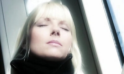 Kinky blonde wearing fishnet pantyhose gets pleasured by her GF