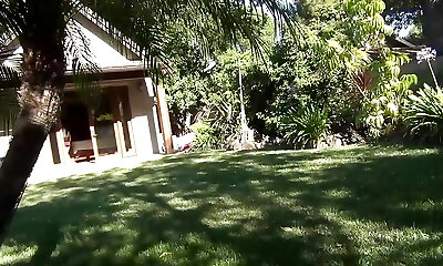 Naughty lesbo babes enjoy having passionate outdoors hump with Jane