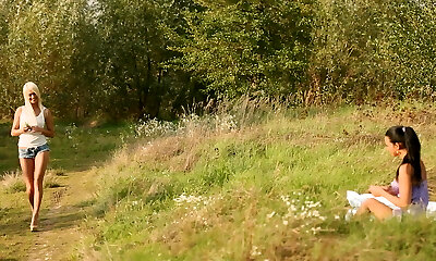 Zwei heisse Teenagers mit prallen titten ficken sich im freien