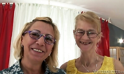 Blondie grannies Milli and Beata finger and toy each other's shaved vags