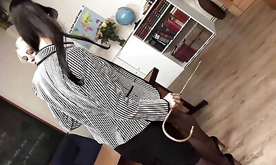 Lesbian trains rubs against my pussy and then spanked by my Milf stepmom