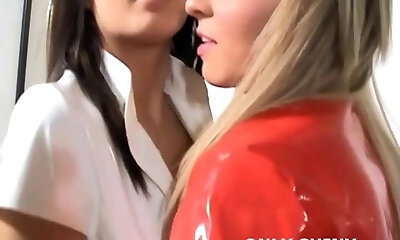 Two adorable femmes with amazing bodies are about to become lesbians!